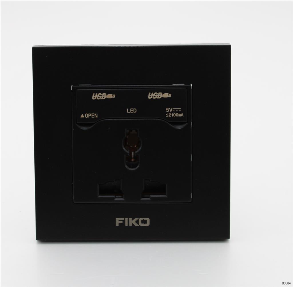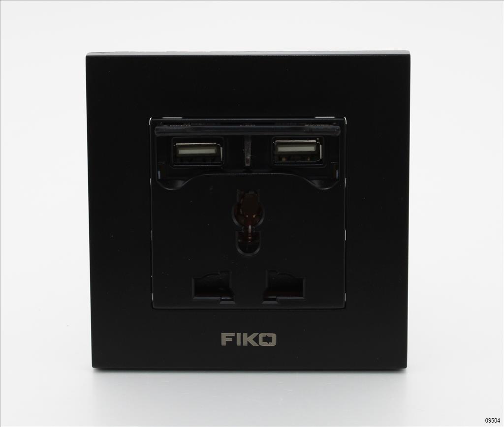 FIKO/ZHONGYIPAI BLACK UNIVERSAL SOCKET SWITCH 13A WITH 2 USB LT-HS-0028