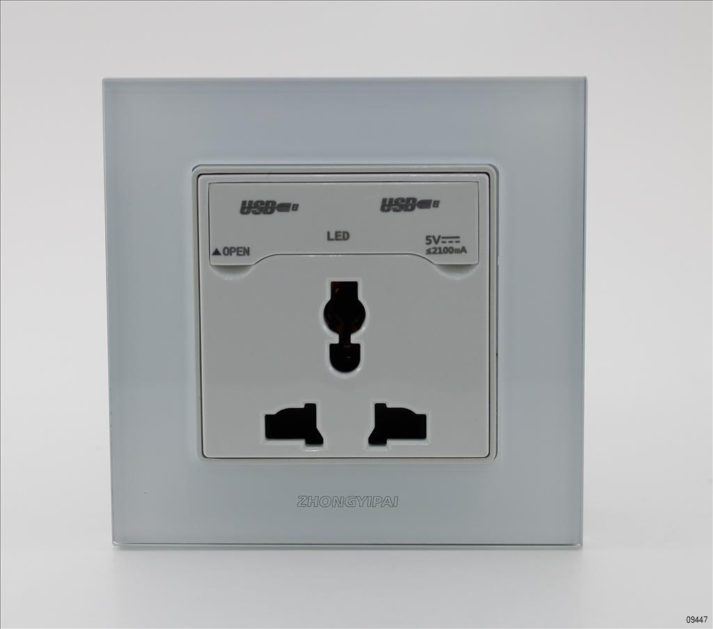 FIKO/ZHONGYIPAI GLASS UNIVERSAL SOCKET 13A WITH 2 USB F71-BB-0028