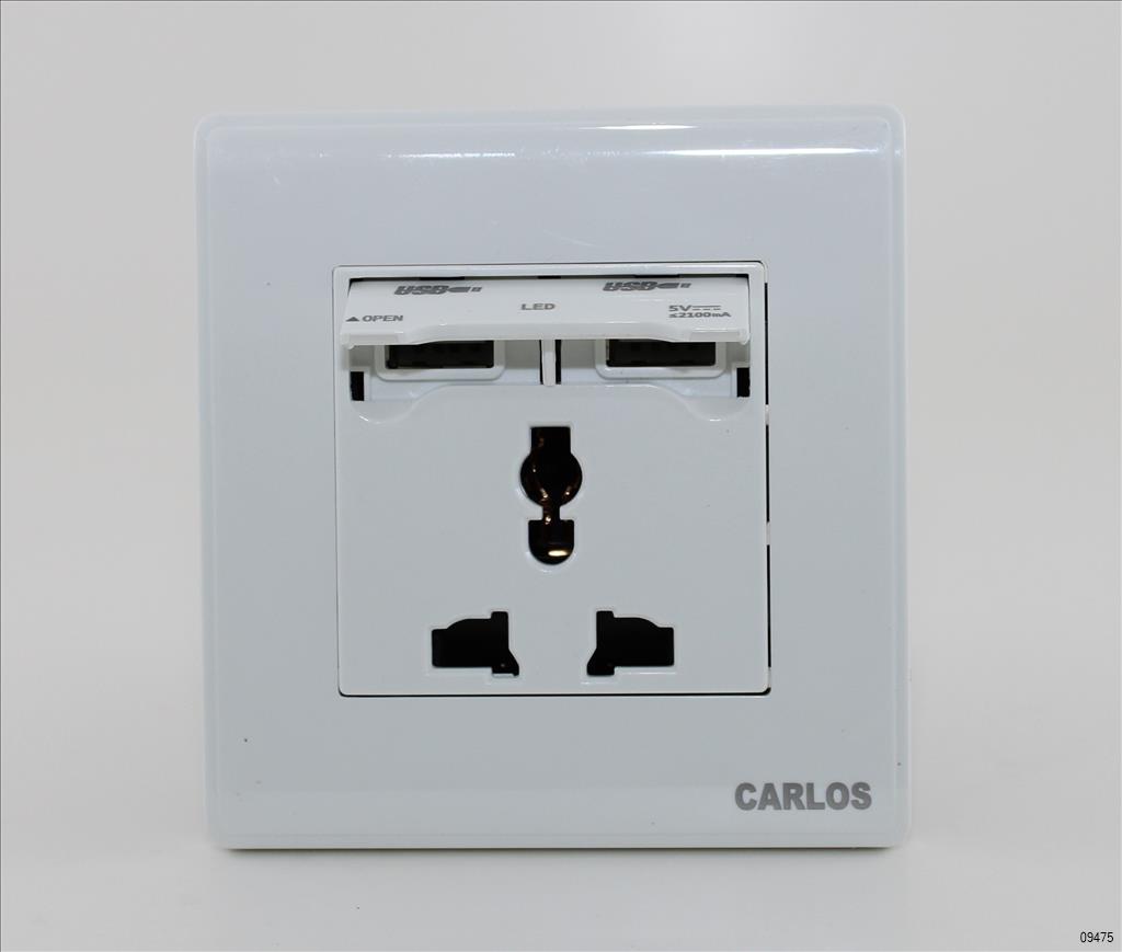 CARLOS/ZHONGYIPAI WHITE UNIVERSAL SOCKET SWITCH 13A WITH 2 USB FS1-0040