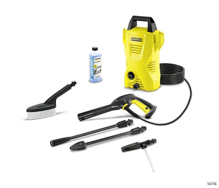 The Karcher 1.673-129.0 K2 Compact Car GB High Pressure Washer is both compact and powerful. This high-pressure cleaner is mobile and easy to store. The Car Kit includes a wash brush for effective removal of grey film on vehicles, foam nozzle and car shampoo in a 500 ml collapsible container.
