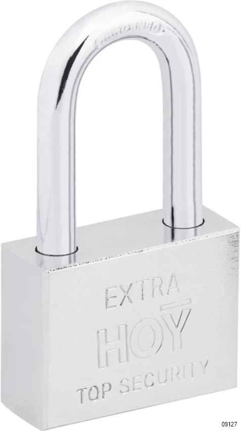 HOY Pad Lock are strong, lightweight and innovative. The case hardened shackle resists sawing and filing and the pin tumbler cylinder provides resistance against picking. This product is ideal for all padlock applications where a longer shackle is required.