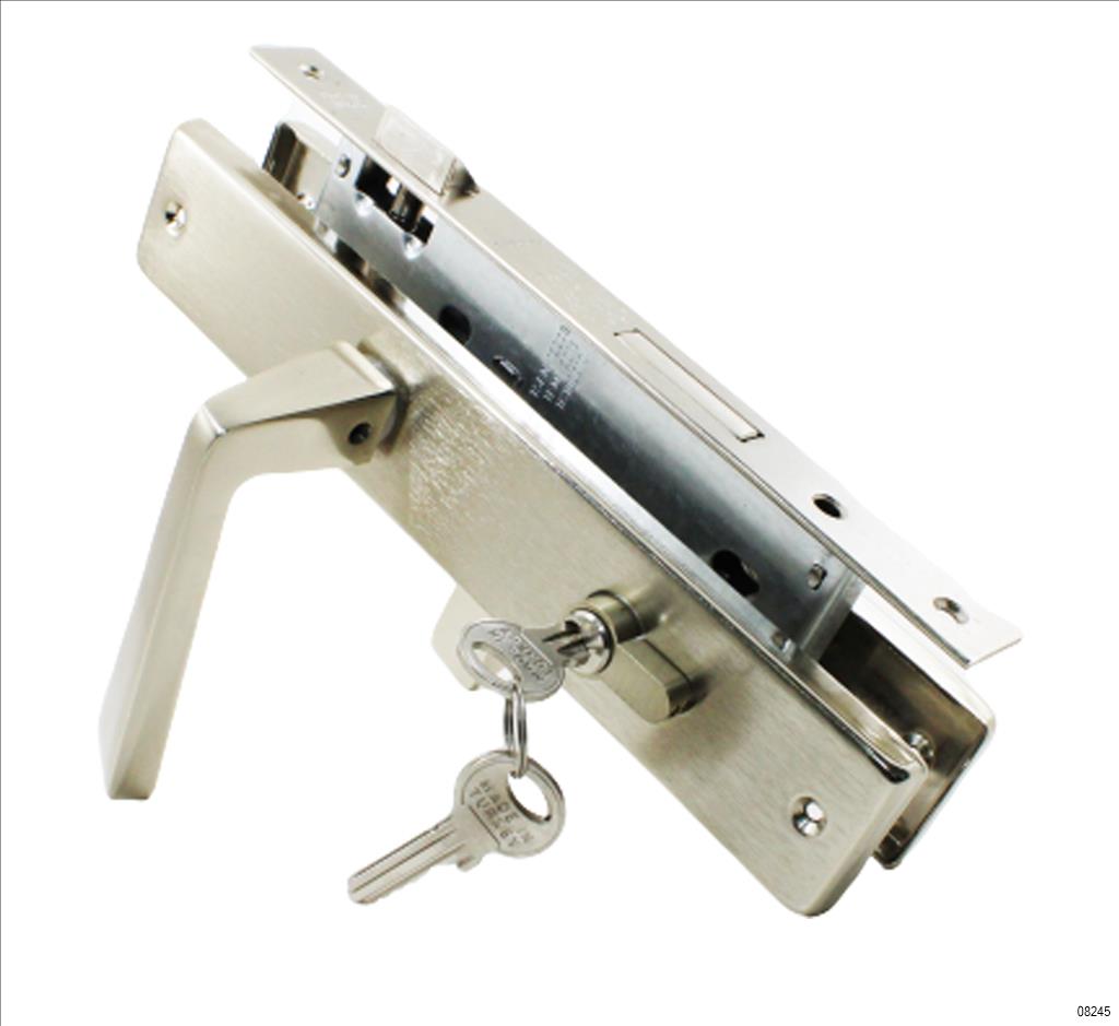 A mortise refers to the pocket cut into the door where the lock is fitted. A mortise style lock is the most secure form of an entry set. A special cut in the door allows a longer and thicker mortise to slide into the pocket in the door itself, providing superior protection.
