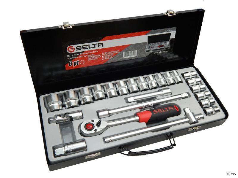 - 18pcs 1/2" Dr. Socket: 8, 9, 10, 11, 12, 13, 14, 15, 16, 17, 18, 19, 21, 22, 24, 27, 30, 32 mm