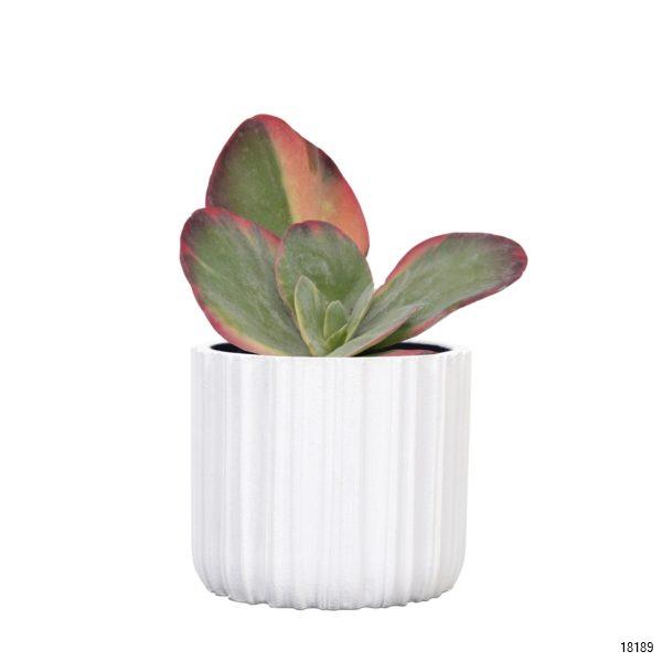 This handmade indoor planter has a smooth and modern design. The new series Lux Stripes literally has a vertical striped texture. The combination of broad and small stripes gives this planter a playful design. The simple colors give these playful planters a modern touch.