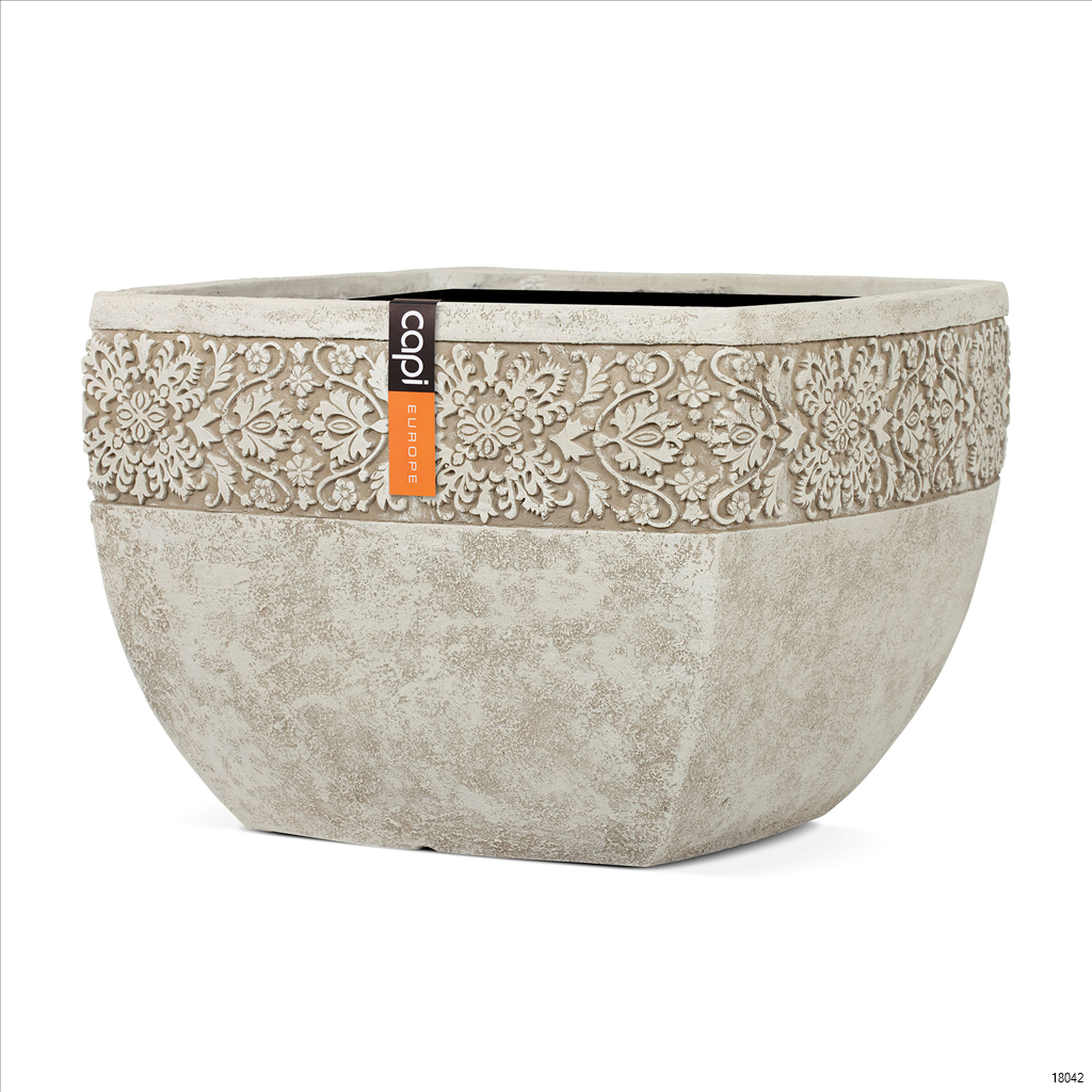 The Capi Classic collection consists of classic planters in a Romanesque style. The antique appearance of this planter is highlighted by a sophisticated, classic trim. The handmade planter is perfect for a colorful and rustic environment, and adds an elegant effect to your flowers and plants.