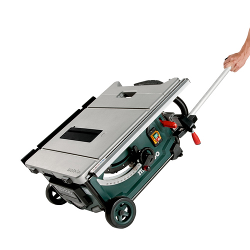 Extremely light table saw with trolley function for more mobility on the construction site.