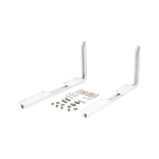 AMIG Adjustable Bracket with aluminum support for microwaves and similar objects, Includes hardware and double-sided adhesive sheets for placement.