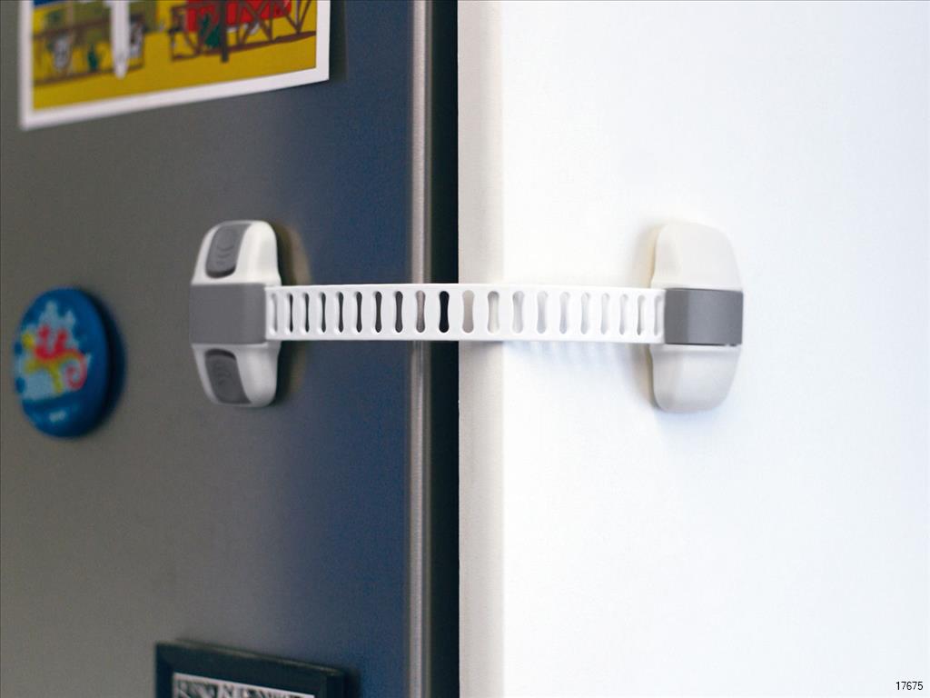 AMIG Adjustable multipurpose safety lock that prevents the opening of closet doors, refrigerators and toilets. Adaptable to different household appliances thanks to its flexible and adjustable strap.