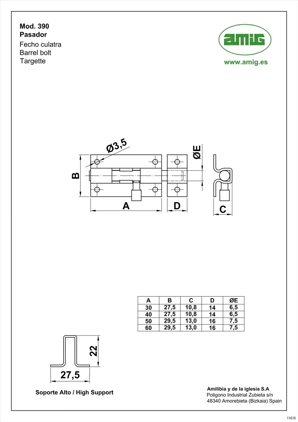 AMIG BARREL BOLT