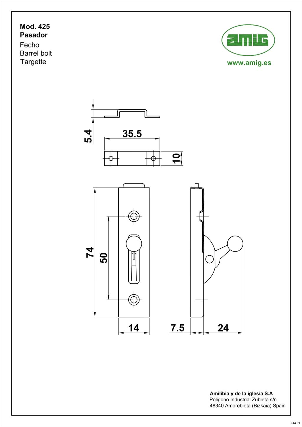 AMIG BARREL BOLT 425 BRASS PL. DPY