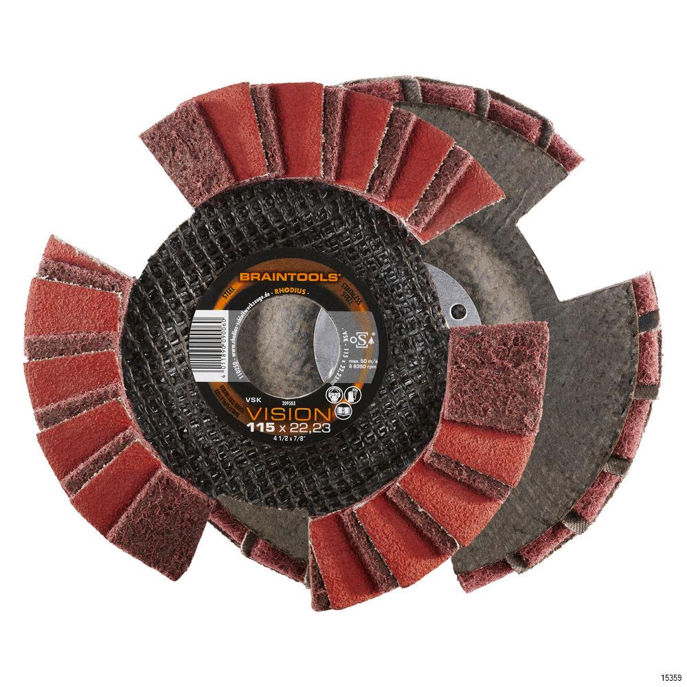 The interleaved combination of abrasive cloth and non-woven belts enables a smoother surface finish along with simultaneous stock removal, thus saving one entire work step.