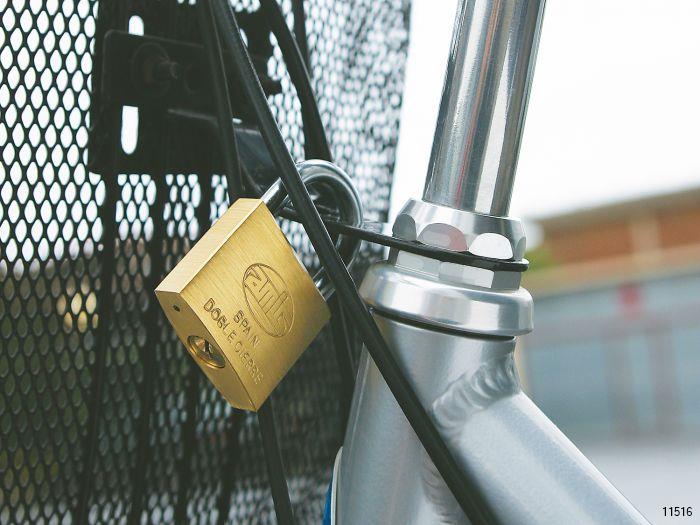 Brass padlock with steel treated shackle.