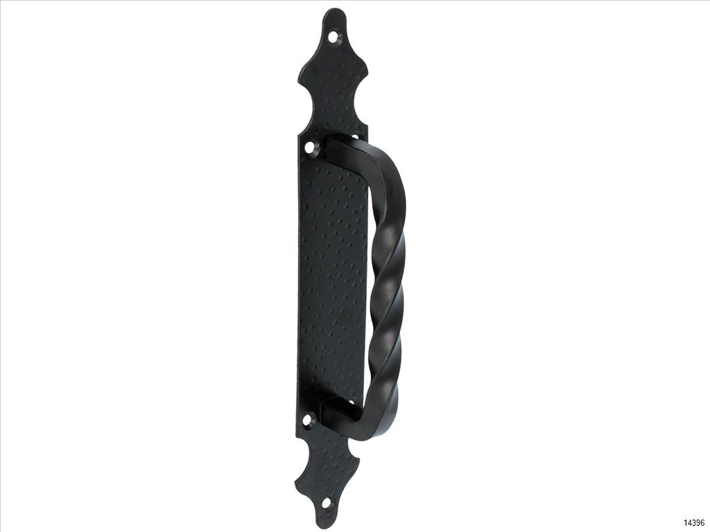 Zamak pull handle with dotted steel plate for interior doors.