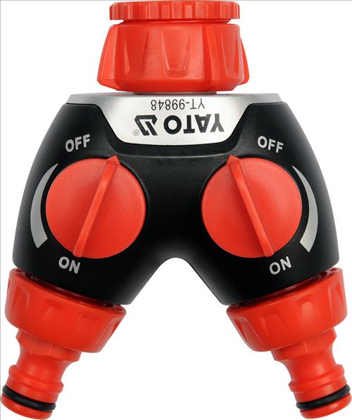 YATO 2 Way Adaptor is a garden hose manifold which has a valve for connecting two hoses to a 3/4 "and 1" tap. It is possible to adjust the water flow separately for each hose.