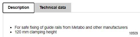 For safe fixing of guide rails from Metabo and other manufacturers.