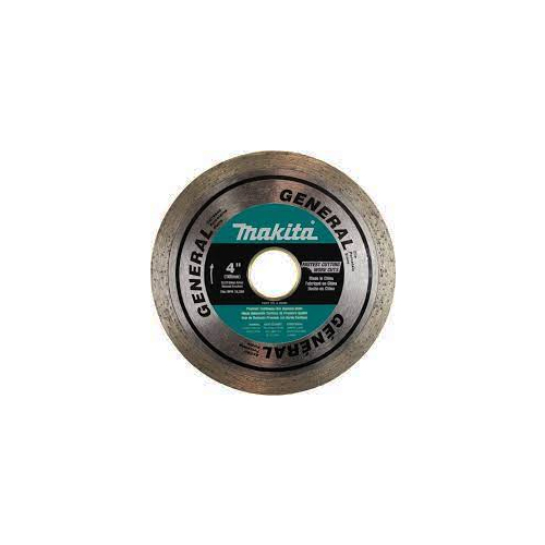 The Makita 4" Continuous Rim Diamond Blade is ideal for general purpose cutting applications including porcelain, stone and tile. The continuous rim design is engineered for constant contact with the material to deliver a smoother finish than segmented and turbo blades. Diamond blades are part of Makita's growing line-up of solutions for concrete, stone and masonry applications.
