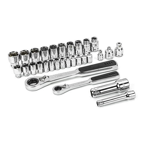 This impressive 30-Piece 1/4" and 3/8" SATA 6 Point Socket Set is up to 50% thinner than conventional ratcheting systems and up to 40% stronger by eliminating drive transmission. The smooth mechanism with three settings that works efficiently when in use.