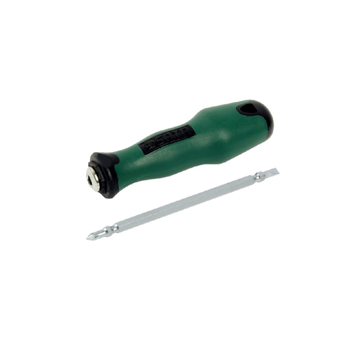 Cushion grip reversible screwdriver with ergonomic dual material (PP+TPR) handle for comfort and strength.