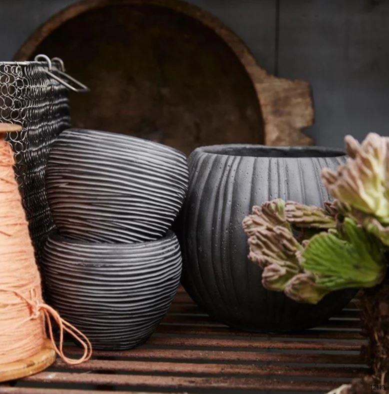 The Capi Rib series consists of a wavy design  inspired by woven reed and its thin lines. This gives a rhythmic feeling and can be nicely processed on Capi pots. In addition to a natural look, the narrow, dancing lines also add a playful touch to these pots.