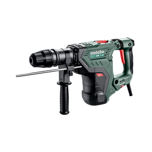 Combination hammer with 2 functions: hammer drilling and chiseling. Integrated damping system to reduce vibrations in order to protect the user's health. Easily accessible locking switch for chiseling in continuous mode. Vario-Constamatic (VC)-Full wave electronics for working at customized speeds to suit the application materials, and speeds that remain almost constant even under load. Thumbwheel for preselection of the speed and impact rate.