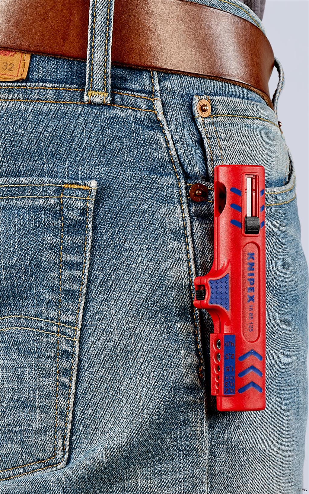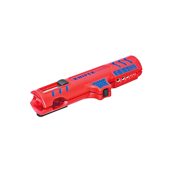 KNIPEX Cable Cutter with integrated cable guide for longitudinal cut. This enables rigid insulation to be stripped more easily. Stripping device for cross-sections 0.2/ 0.3/ 0.8/ 1.5/ 2.5/ 4 mm² with additional blade for longitudinal cuts.