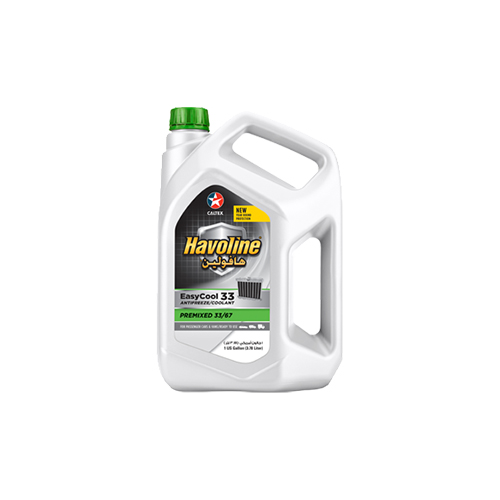 Havoline EasyCool 33 is a carboxylate corrosion inhibitor and mono ethylene glycol based antifreeze coolant for automotive and light duty diesel engine applications. Havoline EasyCool 33 is prediluted and contains inhibitors providing protection from freezing, overheating, rust and corrosion when used as recommended. There is no need to add water.