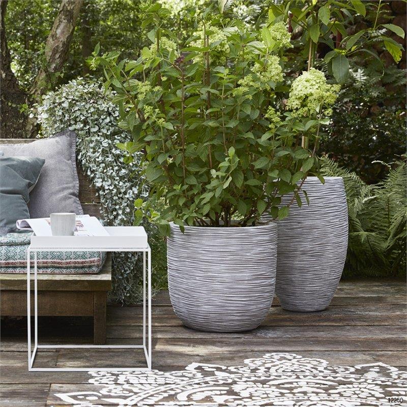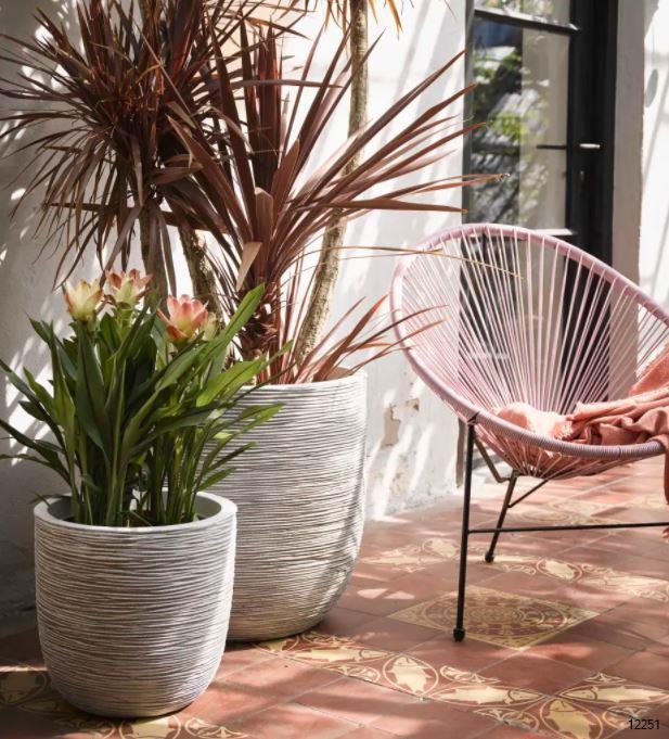 The Capi Rib series consists of a wavy design  inspired by woven reed and its thin lines. This gives a rhythmic feeling and can be nicely processed on Capi pots. In addition to a natural look, the narrow, dancing lines also add a playful touch to these pots.