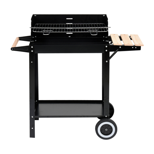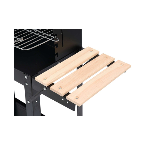 - a wooden side shelf and a spacious bottom shelf for plates, barbecue utensils, etc.