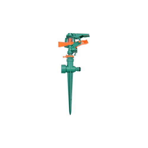 Rotary, impulse sprinkler made of ABS plastic. The zinc alloy pin allows easy and convenient placement even on very dense lawn surfaces.