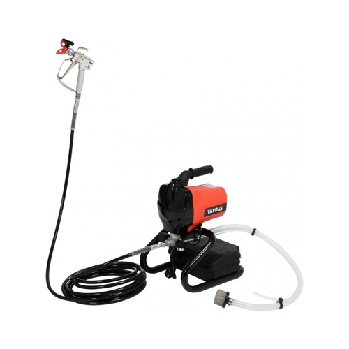 Hydrodynamic painting unit with a power of 650W and a pressure of 207 Bar. It has the function of regulating the spray stream in the range of 250-310mm. The aggregate is equipped with a 7.5 meter long hose, thanks to which the tool has a large working range, which significantly improves the comfort of work. The device has a pump collecting paint from any dispenser. Designed for painting large surfaces of walls and ceilings. Adapted to latex and acrylic paints, emulsions, enamels, etc.