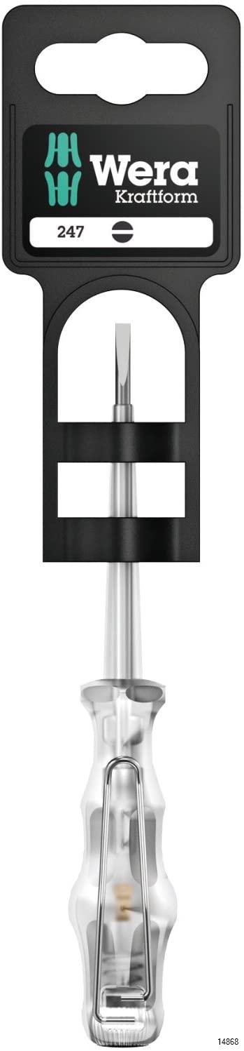 WERA single-pole voltage tester to detect voltage in the 150-250 volt range; comes equipped with a practical clip.