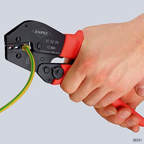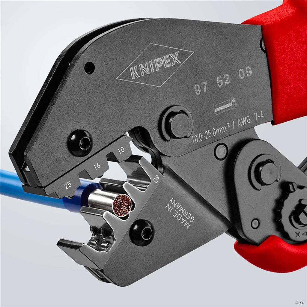 KNIPEX Crimp Plier is a new generation of lever action crimping. For solder-free electrical connections. The ingenious lever transmission reduces the hand force up to 30% compared with regular crimping pliers. Repetitive, high crimping quality due to precision dies and integral lock (self-releasing mechanism).