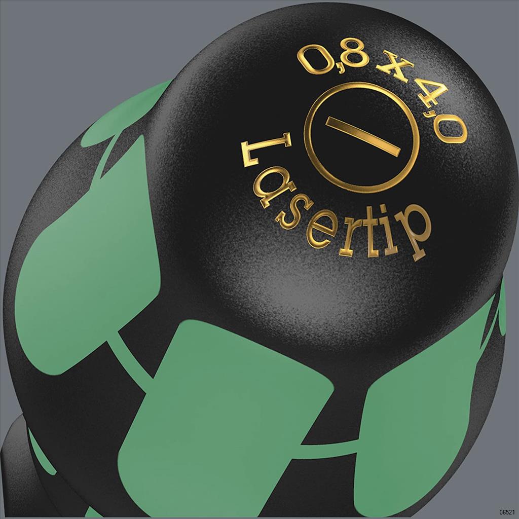 High quality WERA Slotted screwdrivers is Multi-component Kraftform Plus handle for pleasant, ergonomic working that makes blisters and calluses a thing of the past. The tips of the Wera Laser tip screwdrivers are microscopically roughened by laser beams. This rough surface literally bites into the head of the screw.