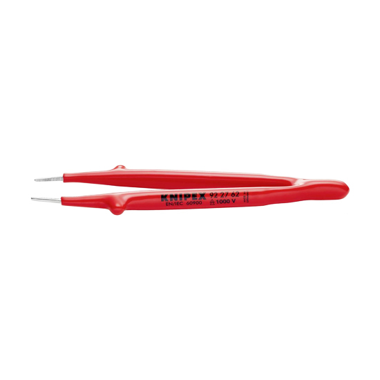 KNIPEX Insulated Precision Tweezers for ultra fine mounting work. With dipped insulation. Gripping surfaces with fine transverse serration.