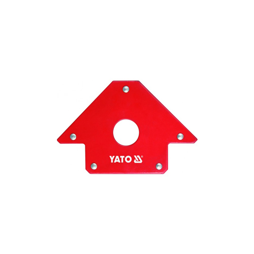 Magnetic square made of steel sheet and strong ferrite magnets. It enables precise joining of materials at the following angles: 45 °, 90 ° and 135 °. Magnet lifting capacity approx. 22.5 kg. It has a hole for mounting cylindrical elements, e.g. tubes and rods, with a diameter of up to 28 mm. The surface of the magnet's housing is powder coated. Designed for temporary joining of metal elements during welding, drilling, varnishing, activities requiring the use of both hands. The use of a magnetic square allows for easy operation with both hands and initial assembly of the connected metal elements without the help of an additional person.