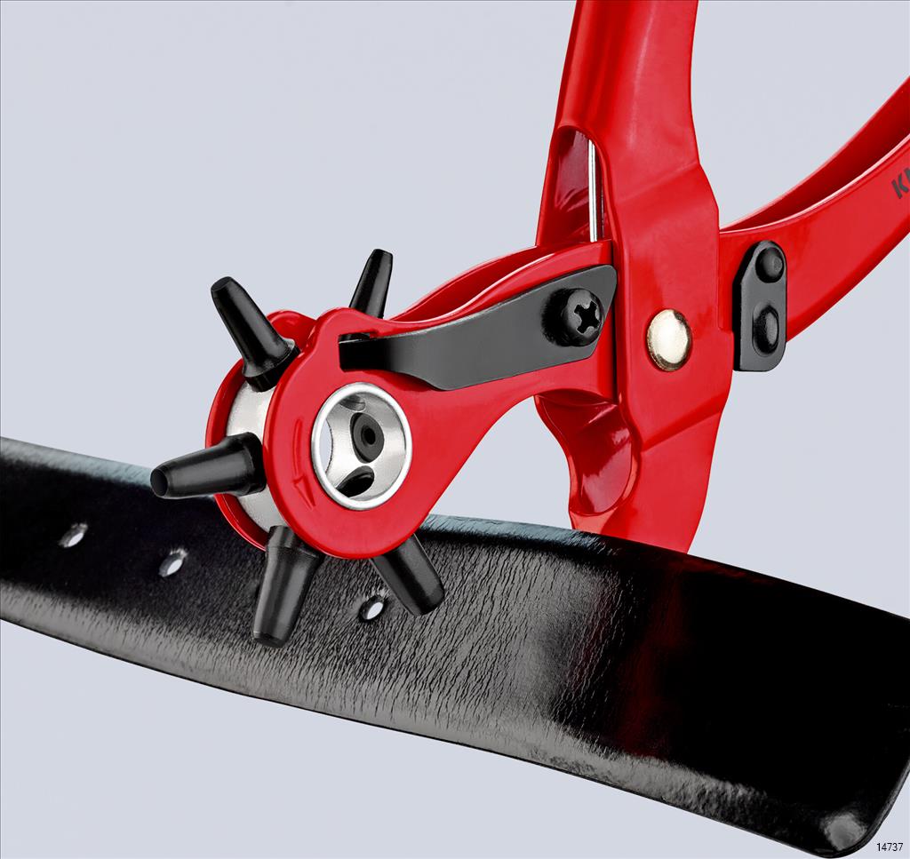 KNIPEX Revolving Puncher specifically designed to punch out holes in leather, textiles, and plastic materials.