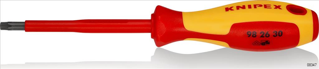 KNIPEX Screwdrivers comes with an ergonomically optimized dual component handle for fatigue reduced work and optimum transmission of force. The tip is made of Chrome Vanadium Molybdenum Steel which gives an anti slip grip and avoid unnecessary damages on your component.