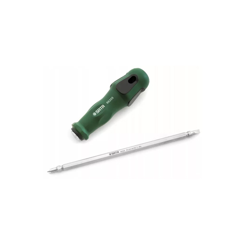 SATA TOOLS Acetate 66205 Plus Min Reversible Screwdriver [#1 x 1.0 x 5.5 x 150 mm] is a screwdriver with a blade made of premium chrome molybdenum steel that has high performance, hardened and forged to provide maximum strength. With dual ergonomic material (PP + TPR) to provide comfort & strength, anti-oil and solvent and equipped with magnets at the ends.