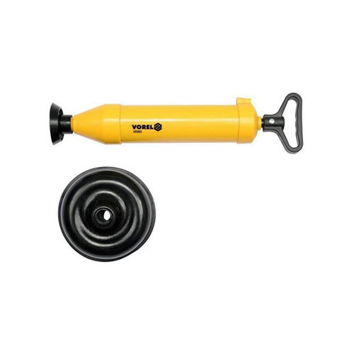 A pressure drain cleaner that works by pulling the piston back and forth over a sealing nozzle pressed against the drain pipe to create negative and positive pressure in this to dislodge clogged particles in the pipe.