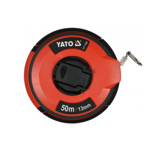 A professional tape measure designed to measure long distances in open areas or indoors. Made of ABS plastic, measuring tape made of steel. The tape has a nylon coating that protects against abrasion and discoloration. Tape width 13 mm.