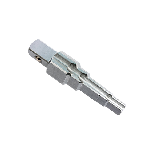 3/8" (9.6 mm) / 29/68" (11.6 mm) / 1/2" (12.6 mm) / 21/32" (16.4 mm) / 27/ 32" (21 mm) with 1/2" drive made of high quality CRV steel. On both sides it has a cut for screw connections with protrusions. The YT-03316 step wrench for screw connections together with the YT-03315 ratchet is used to assemble: - connectors with external thread (male) - heating valves - lower cut-offs on radiator returns - valve extensions.