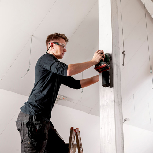 Flat cordless random orbital sander with ergonomic design and low weight for low-fatigue working