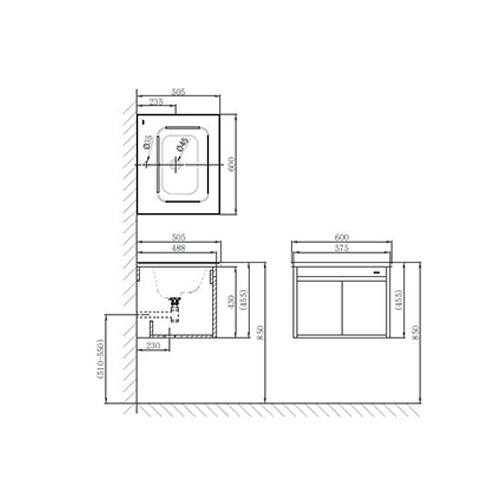 INNOCI WASH BASIN CABINET SET 60CM (VANITY SET NM45801X + BASIN NC22148W-1)