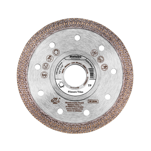 Powerful diamond cutting disc with closed edge for cutting without chipped edges on workpieces with high-quality surfaces with high cutting performance and very good tool life