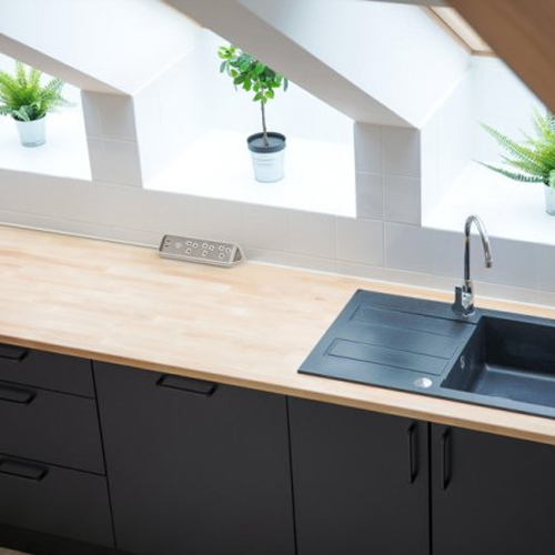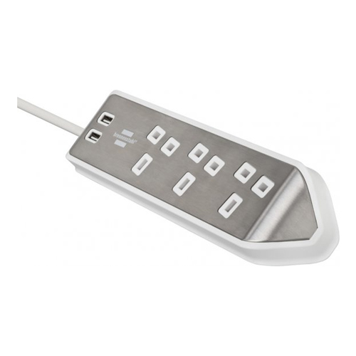 Sturdy kitchen extension lead made of highly break-resistant plastic and high-quality stainless steel surface brings order back into your kitchen or office