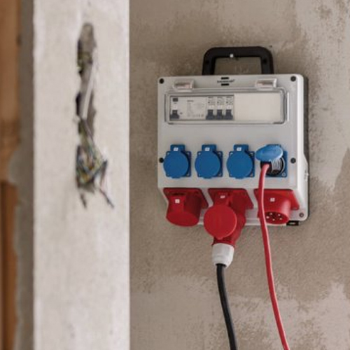 - Wall distributor with 2 CEE sockets, 4 protective contact sockets (protective contact sockets distributed on all 3 phases) and one connection socket