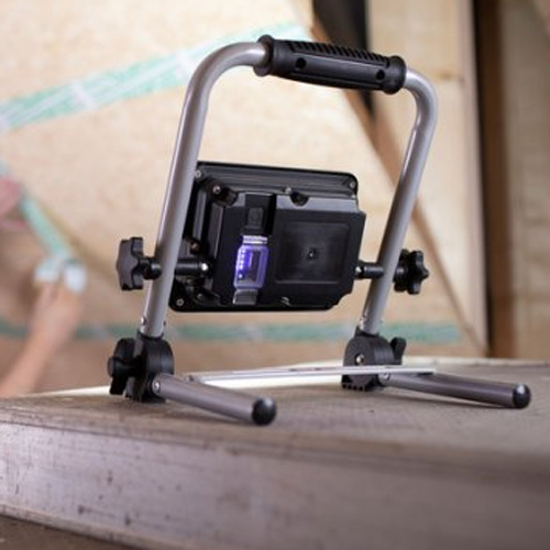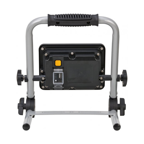 The rechargeable LED Work Light EL 2000 MA with 20 W power is suitable for use both indoors and outdoors thanks to the IP54 protection class (dust and splash-proof), such as for various DIY and craftsmen's work that takes place in or around the house. The portable Floodlight can be continuously swivelled and locked in place and can be stored and transported in a space-saving way thanks to its foldable frame. Not only the aluminium housing is extremely robust, but also the stable tubular steel frame and the locking screws. In addition, the rechargeable Spotlight convinces with the following features: