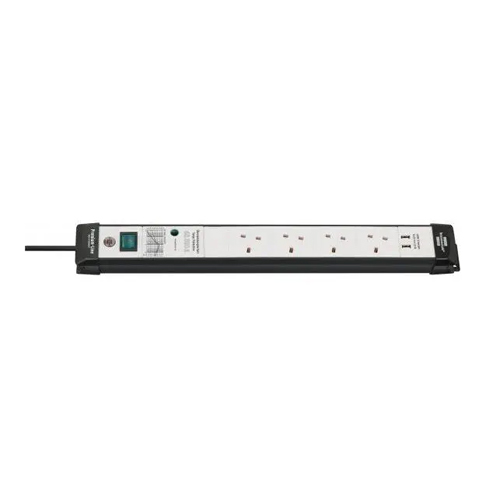Premium-Line 4-way Brennenstuhl extension cord in black / light grey with USB and 3m cable impresses with its quality and safety in all areas. Its stylish, stable casing consists of highly break-proof, polished polycarbonate. In addition, the advanced "fuse button reset function" eliminates the time consuming replacement of the plug fuse and it is simple to reset in case of overload. It's extra protected against contact has the following properties too: