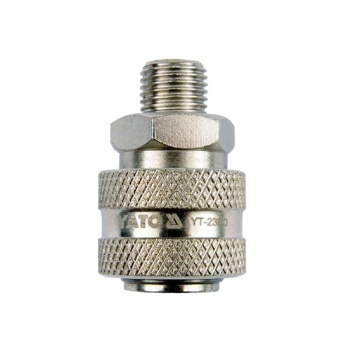 Yato Quick Coupler is used to connect compressed air tools to a compressed airline. A quick coupler allows a tool to be easily connected or disconnected to a hose or pipe while it is under pressure. The standard design makes it easily insertable for a leakproof connection. It is made from high-quality iron Q235 material with a nickel finish for corrosion resistance. This quick coupler can be used for industrial apparatus, mechanical equipment and more.