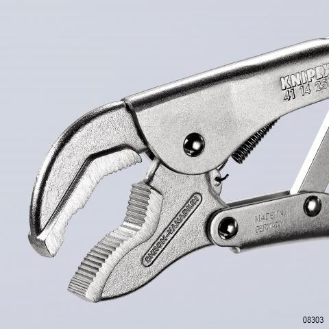 These KNIPEX Gripping Pliers can securely hold or grip flat, round, square or hexagonal-shaped objects. The 10" Universal Grip Pliers, feature an adjustment screw that controls the holding/gripping pressure. They have a slim head that is perfect for working in confined spaces. Our gripping pliers are made of forged chrome vanadium electric steel for heavy-duty durability. The one-handed operation makes these tool is ideal for every day use.